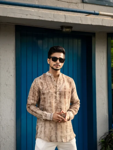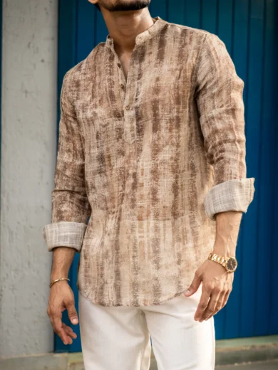 Brown Abstract Printed Full Sleeves Kurta