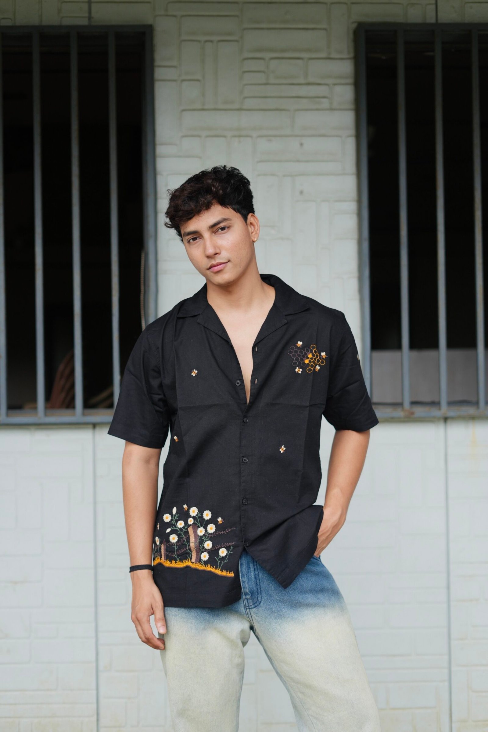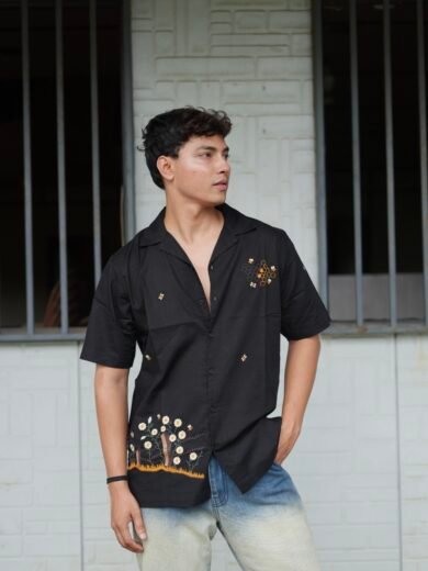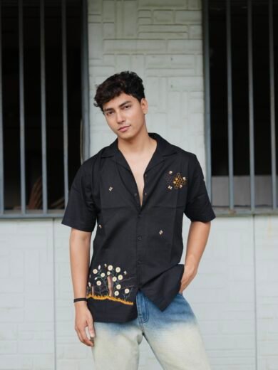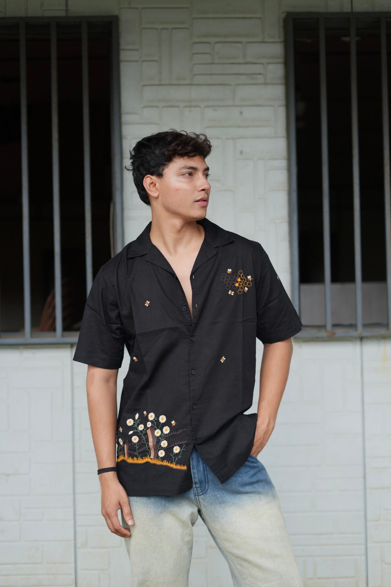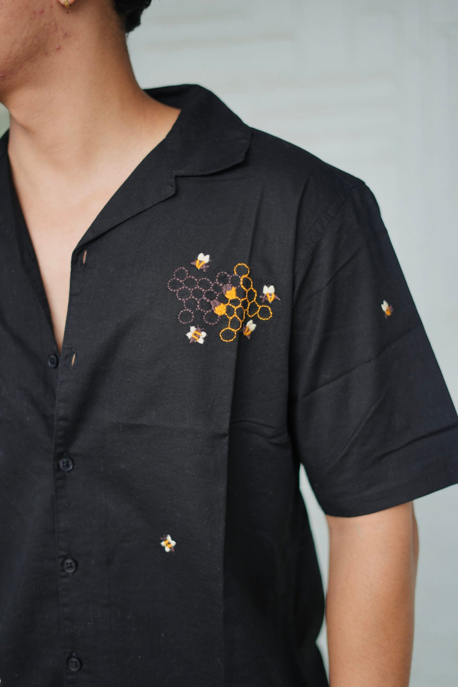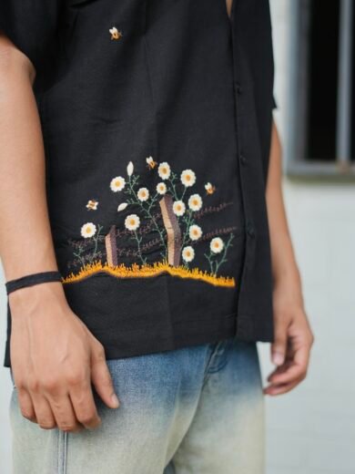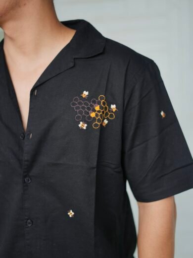 Be the first to review “Black Buzz Garden Cuban Collar Shirt With Bee & Nature Embroidery” Cancel reply