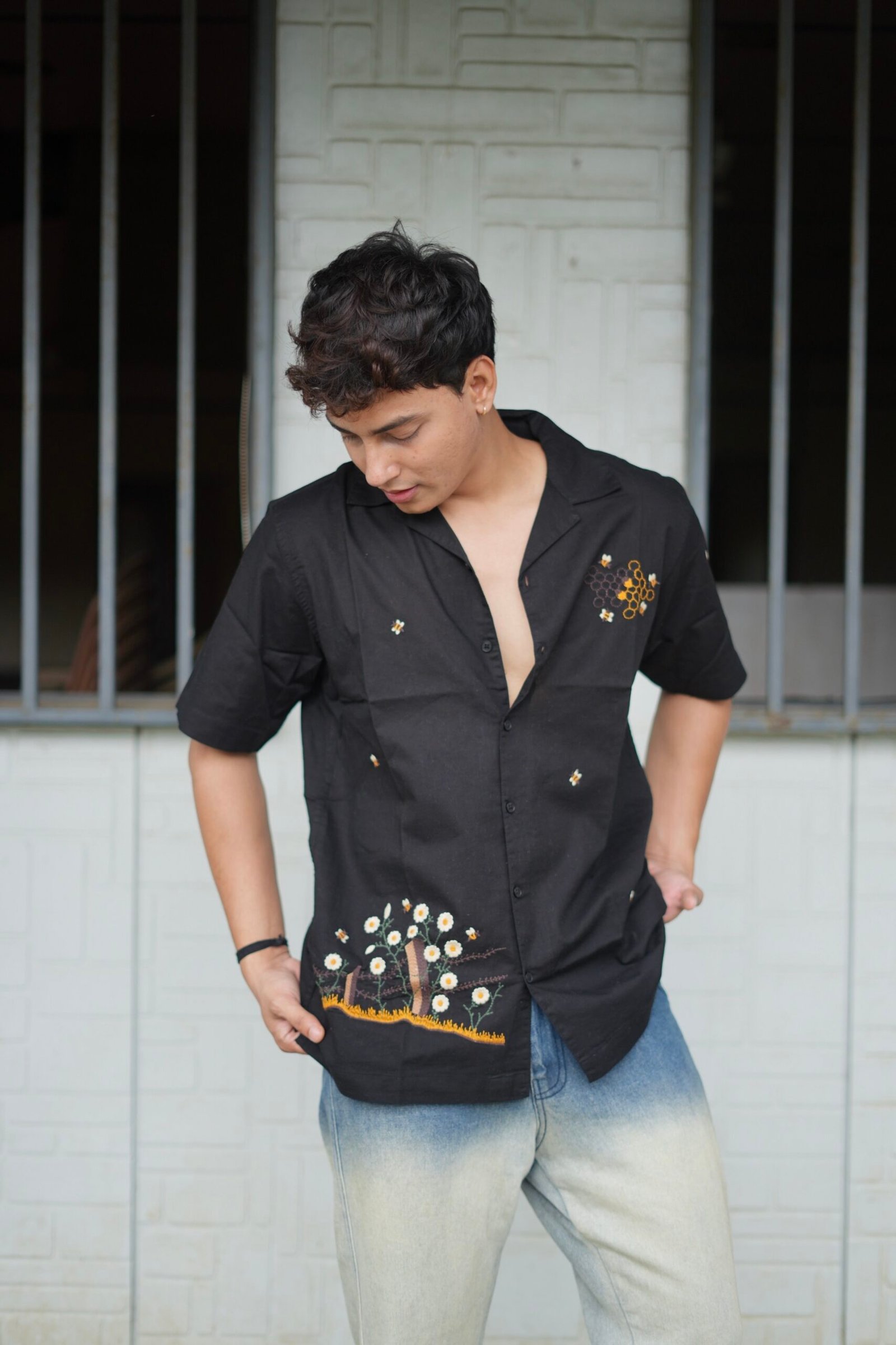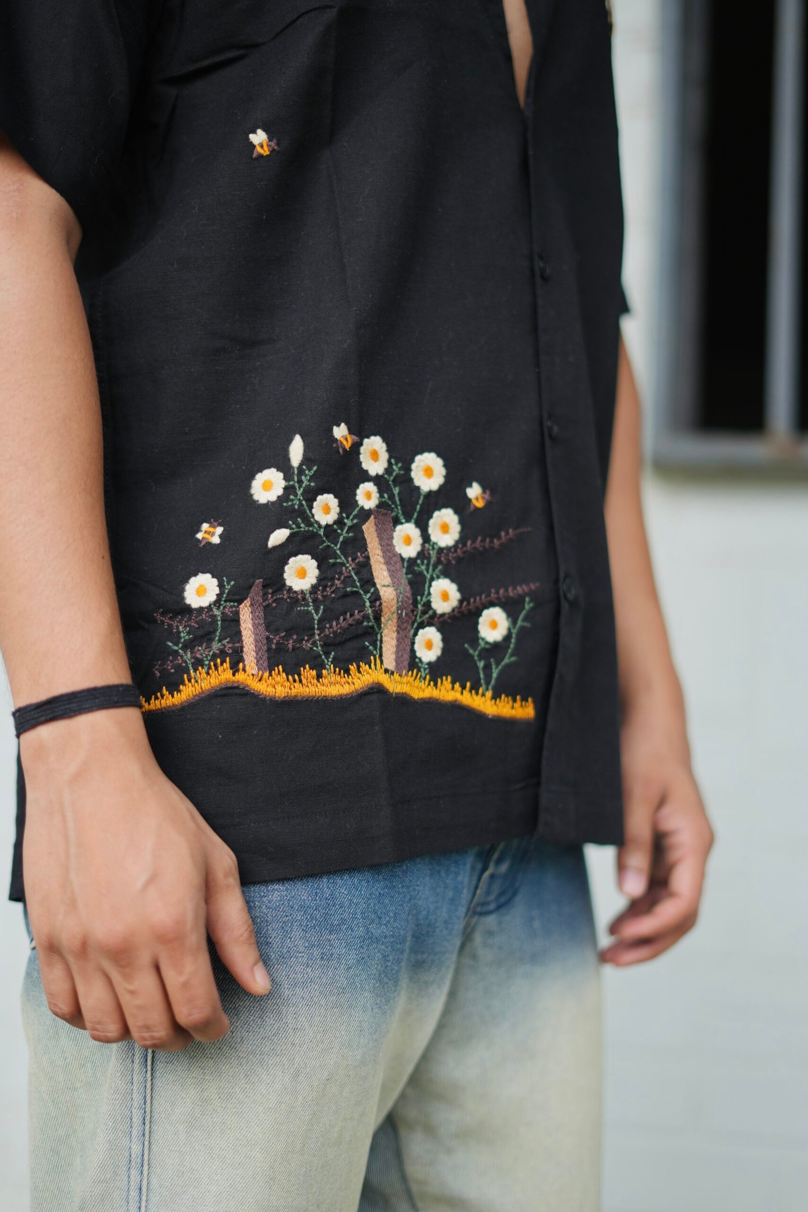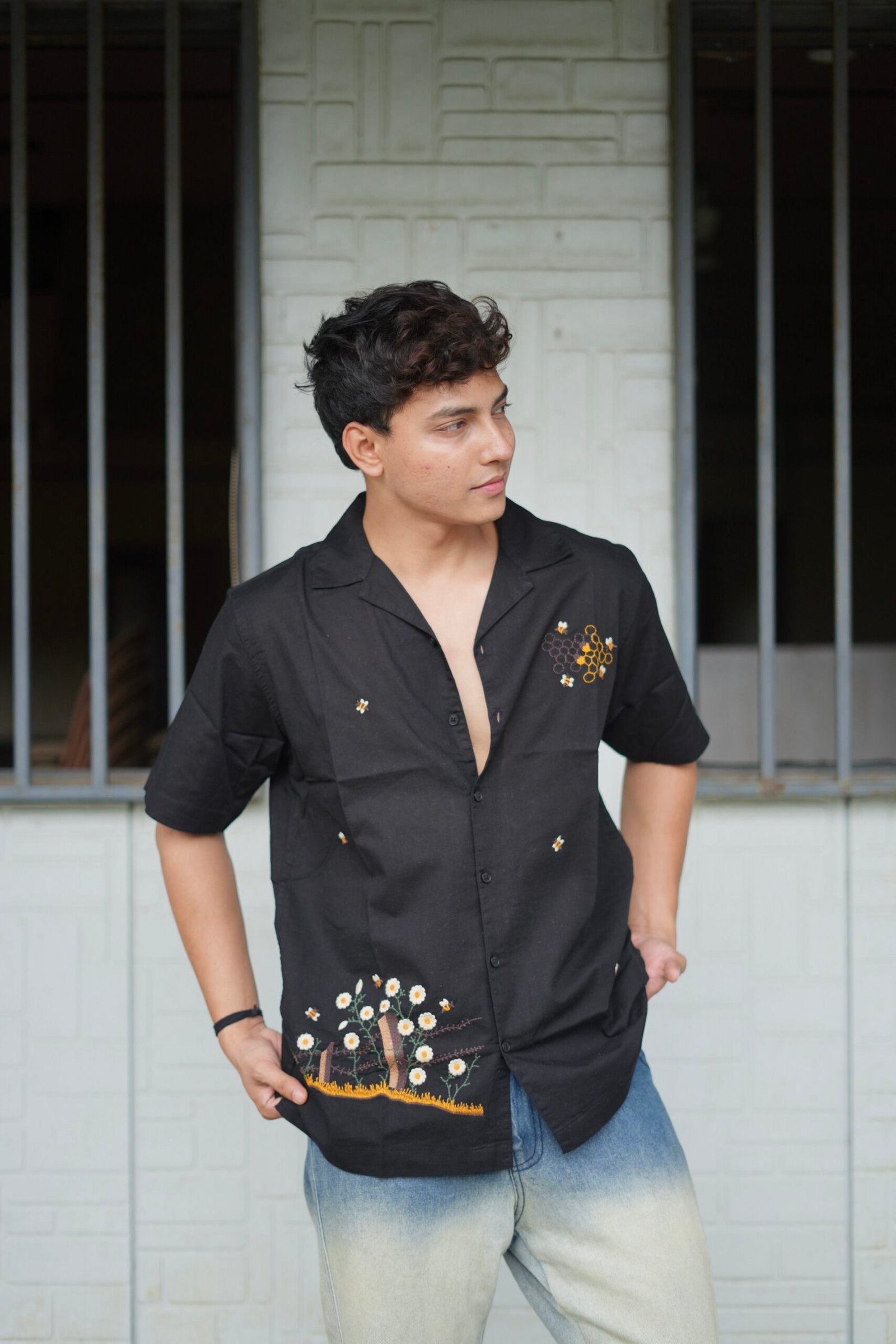 Be the first to review “Black Buzz Garden Cuban Collar Shirt With Bee & Nature Embroidery” Cancel reply