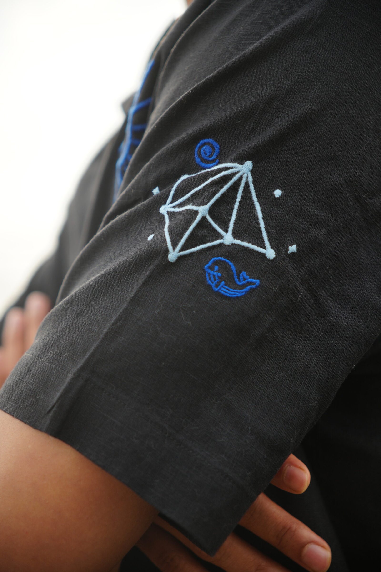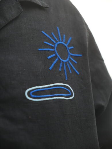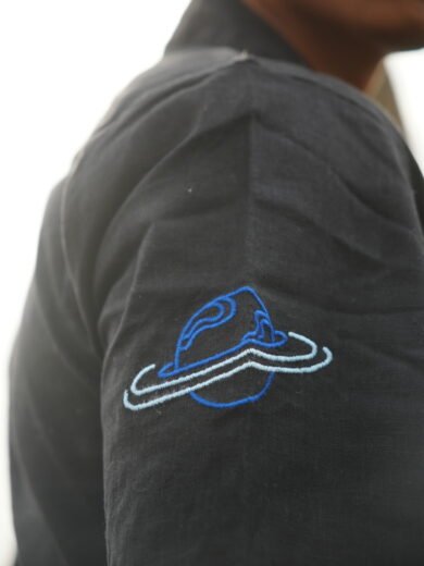 Black H/S Shirt With Cosmic Embroidery