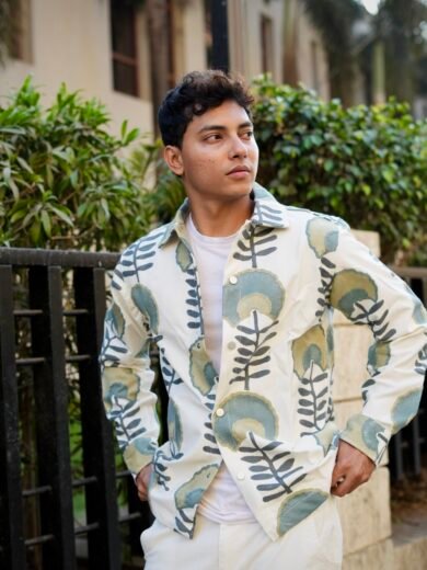 Bring nature into your wardrobe with the Leafline Embroidered White Shacket. Featuring delicate leaf embroidery on a clean white base, this oversized silhouette pairs perfectly with both casual and semi-formal looks. The linen-cotton blend ensures breathability with a soft, structured feel.