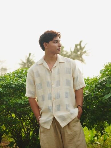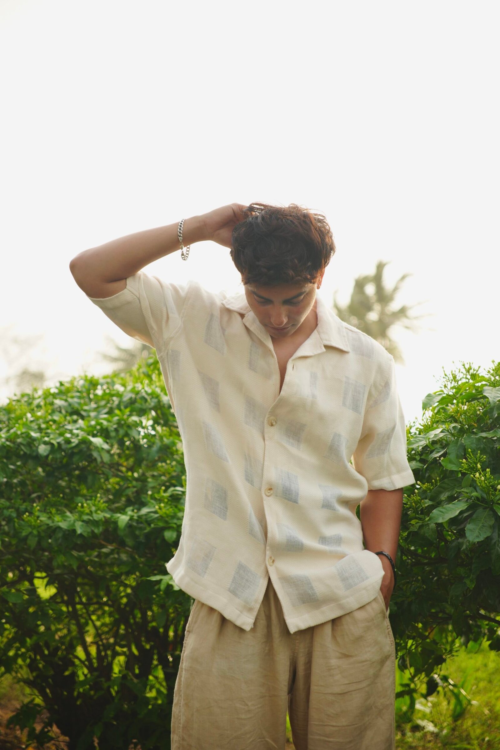 Elevate your wardrobe with the understated elegance of the Off White Half Sleeve Jacquard Shirt. Crafted from 100% viscose linen, this shirt combines the luxurious softness of viscose with the breathable, lightweight texture of linen, ensuring you stay comfortable and stylish throughout the day.