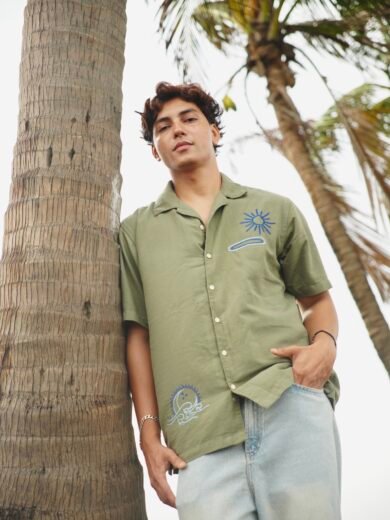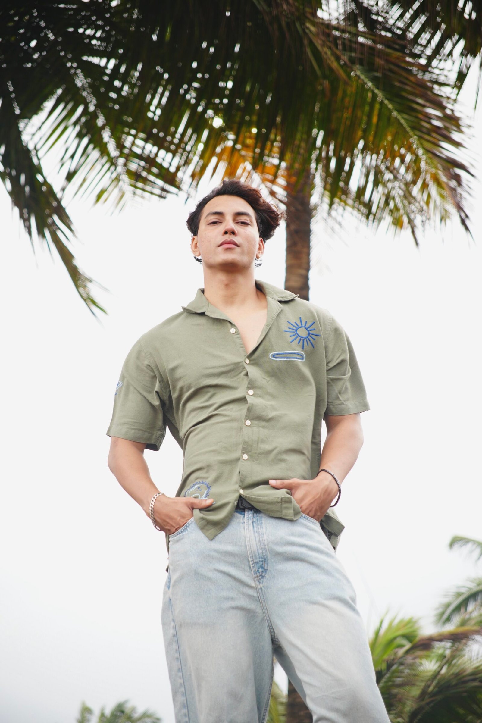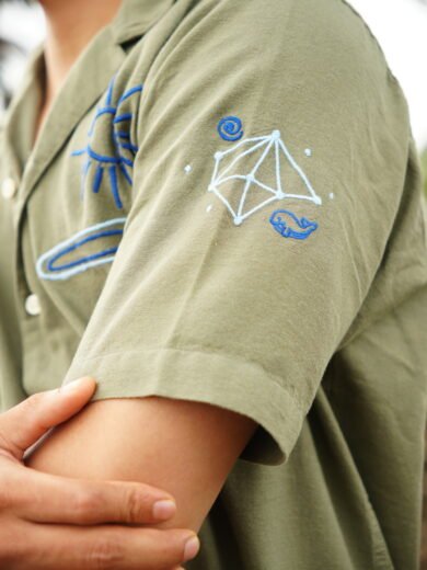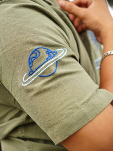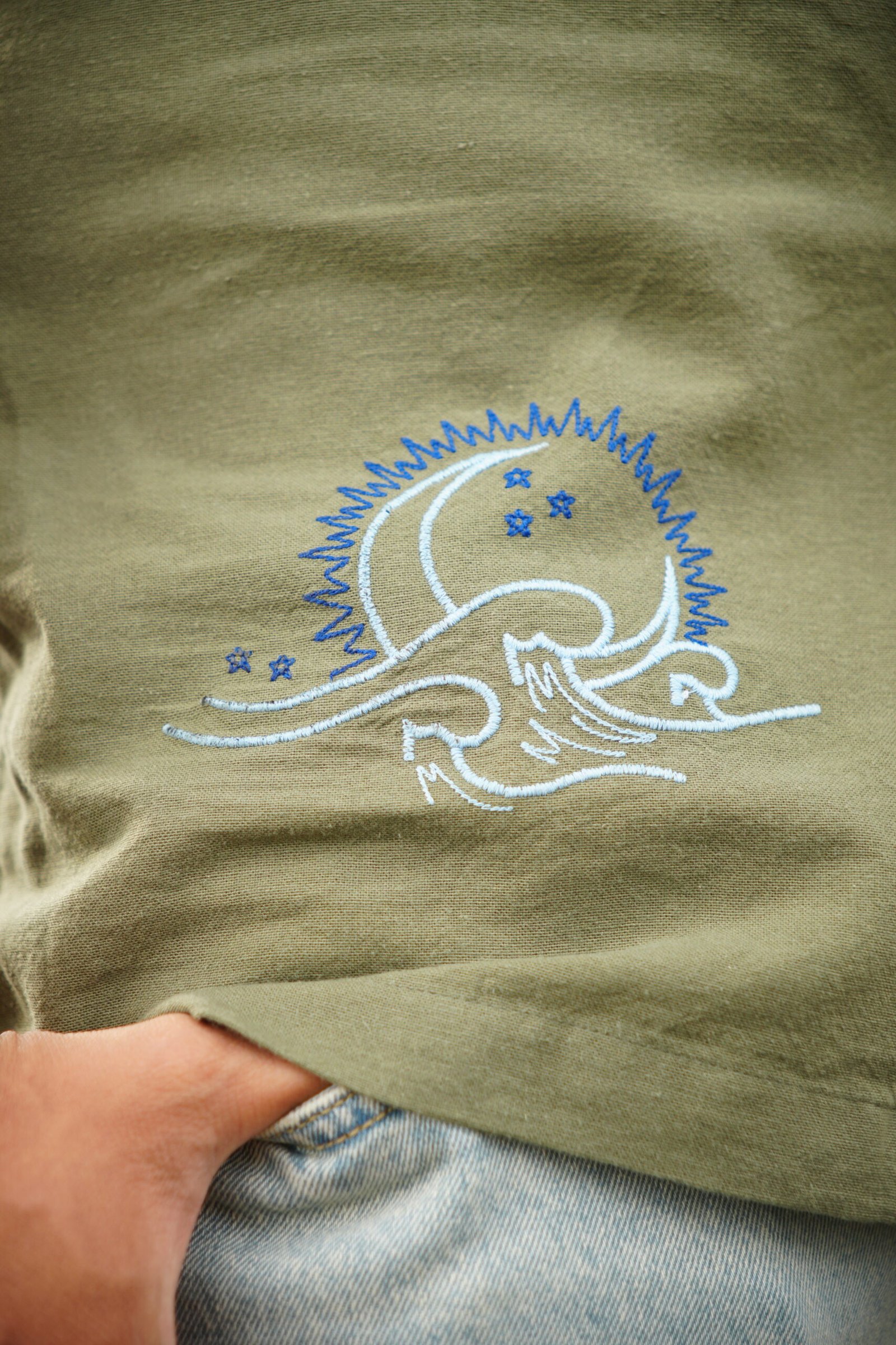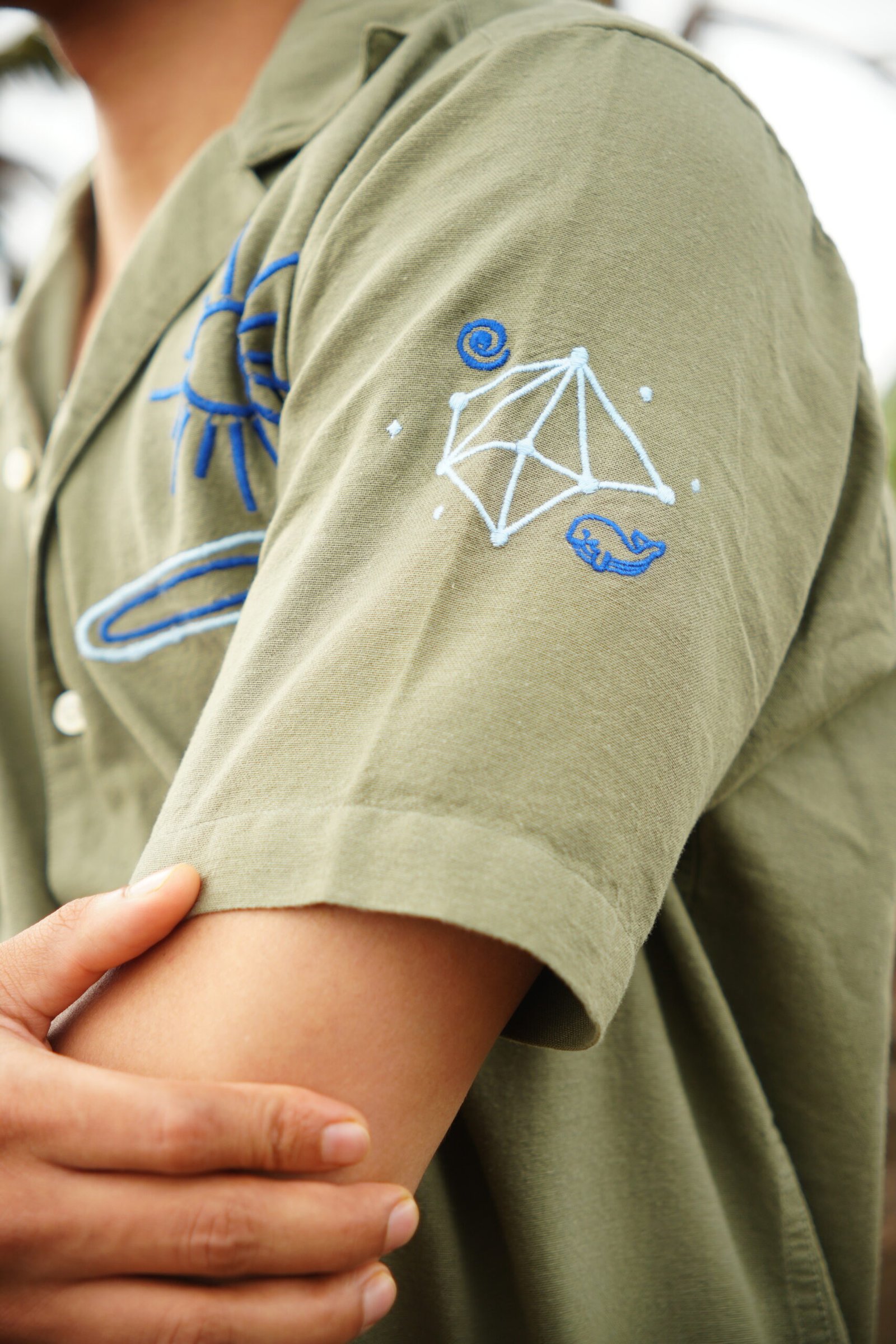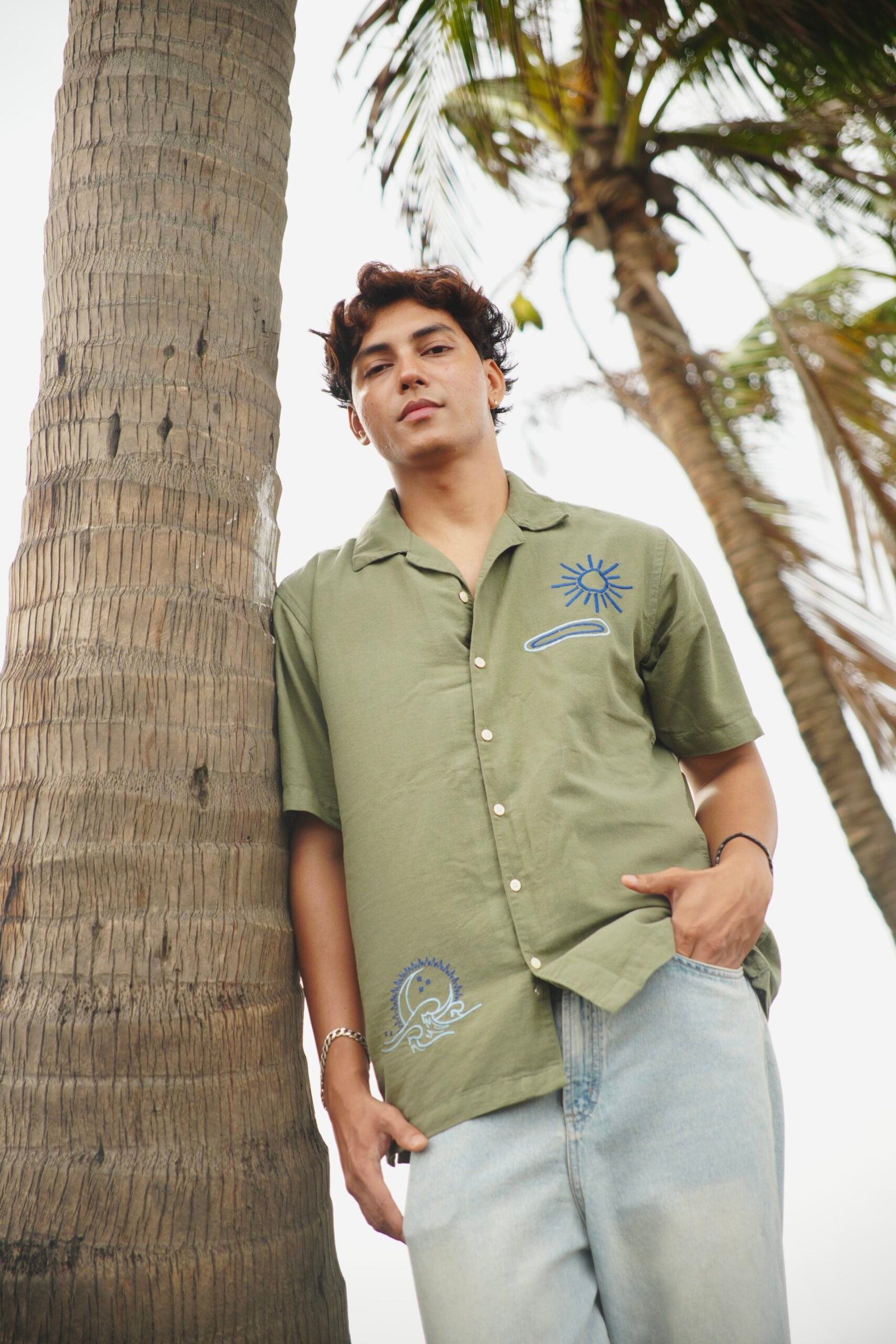 Bring a touch of the universe to your wardrobe with the Olive Half Sleeve Shirt, featuring intricate cosmic embroidery. Made from 100% viscose linen, this shirt combines the luxurious feel of viscose with the breathable, lightweight quality of linen, ensuring comfort no matter the season.
