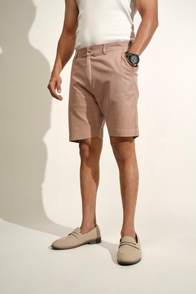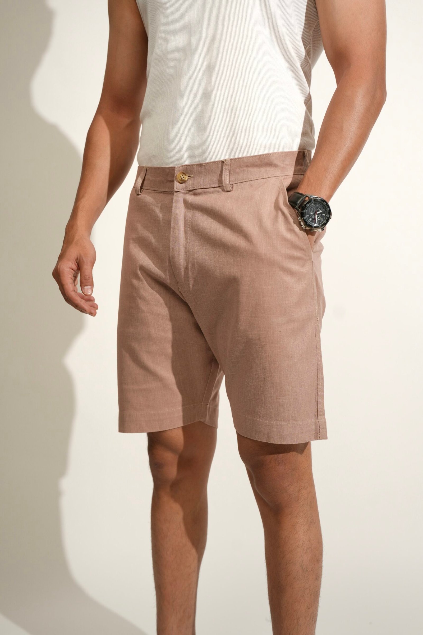 The Tan Brown Shorts strike the perfect balance between earthy and refined. With their natural color and lightweight linen-cotton blend, they offer comfort, versatility, and timeless appeal for warm-weather dressing.
